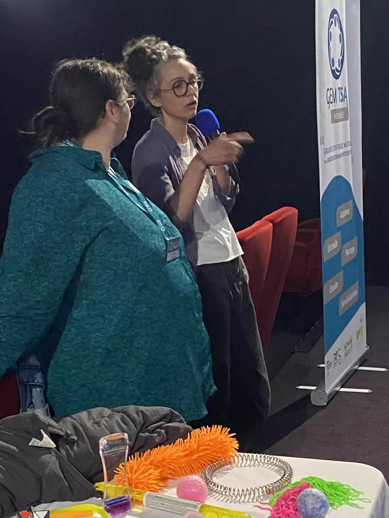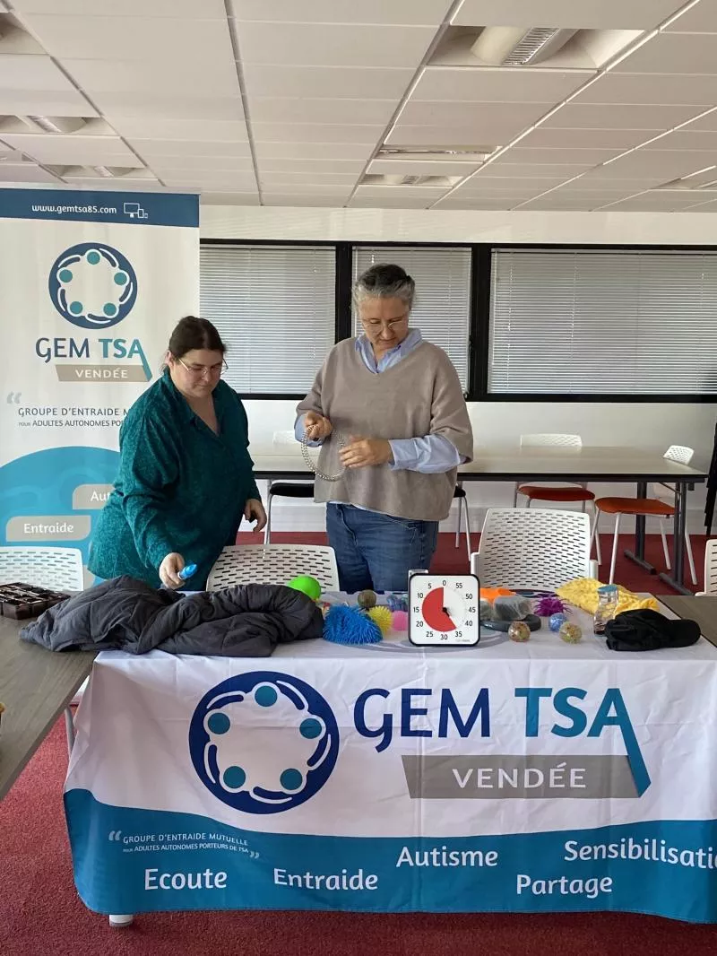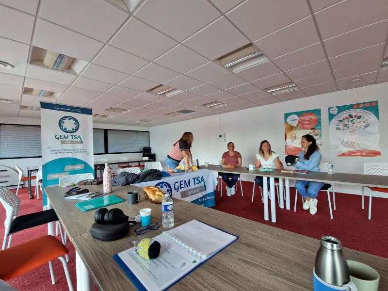 Valérie et Élodie P., accompagnées de Céline Agin (coordinatrice) ont également sensibilisé des professionnels du DAPS et de CAP RÉPIT au GEM TSA Vendée ainsi qu'à l'autisme.