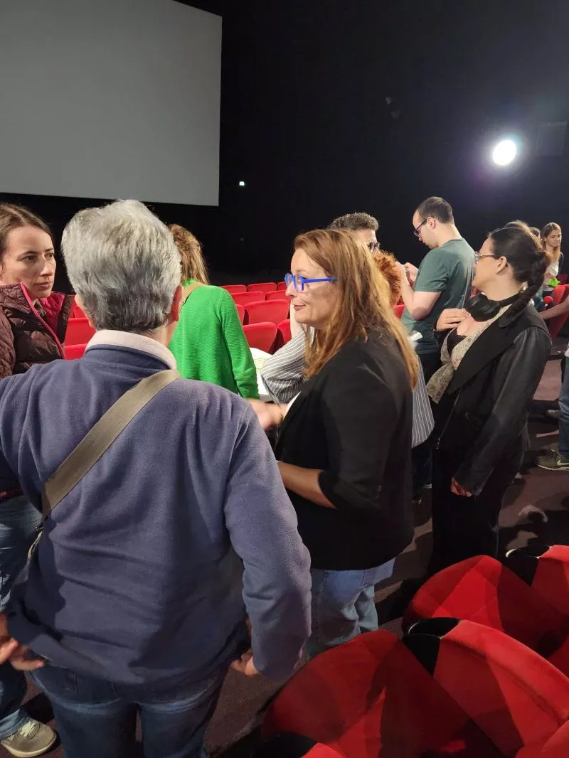 Après avoir visionné sur l'écran du cinéma la vidéo de Stop Motion réalisée par Émilie, Céline et Élodie P. ont présenté brièvement l'association puis les échanges ont pu commencer.