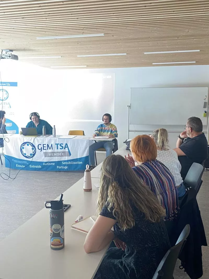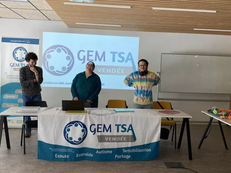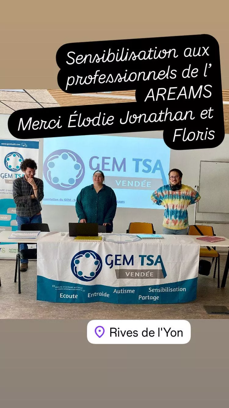 Floris, Jonathan et Élodie P. sont également intervenus avec notre coordinatrice Céline Agin pour présenter le GEM TSA 85 et évoquer l'autisme dans la diversité de son spectre auprès de professionnels de l'AREAMS.