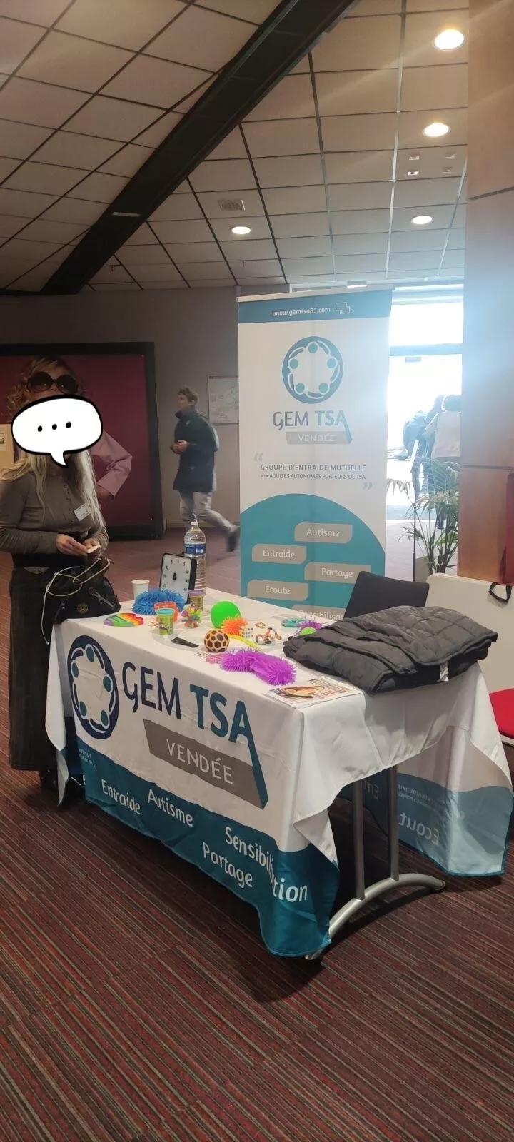 Nous remercions les adhérents du GEM qui étaient présents à la journée mondiale de sensibilisation à l'autisme, notamment Mélodie, Cécile et Élodie pour leur participation aux différentes tables rondes mais également Florence et Valérie qui étaient présentes sur le Stand du GEM.